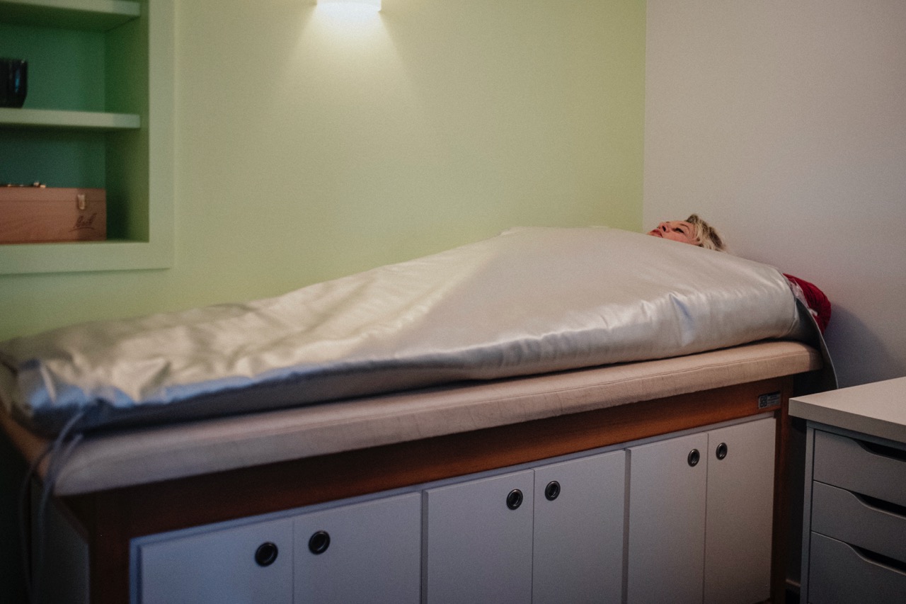 1. Phase de sudation active – dans la couverture chauffante, le corps évacue les toxines en circulation.